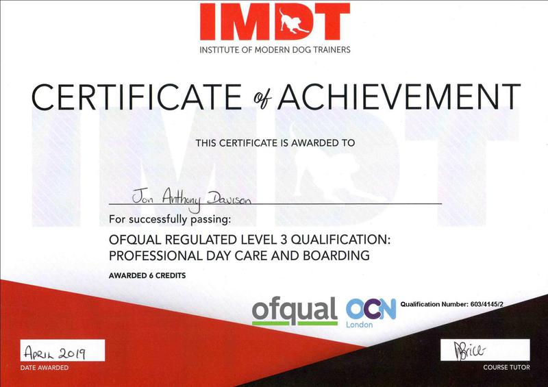 Since then I have embarked on various dog behaviour/psychology courses & practical training, obtaining Distinction Grades in my Canine Psychology Diploma, Dog Training Diploma, Canine Language and my Canine Aggression Diploma. I think it is important to continue research and learning in this area to further enhance knowledge and skills. I have also now completed a Canine First Aid Course to ensure that any dogs in our care can receive the best of attention should it be required.