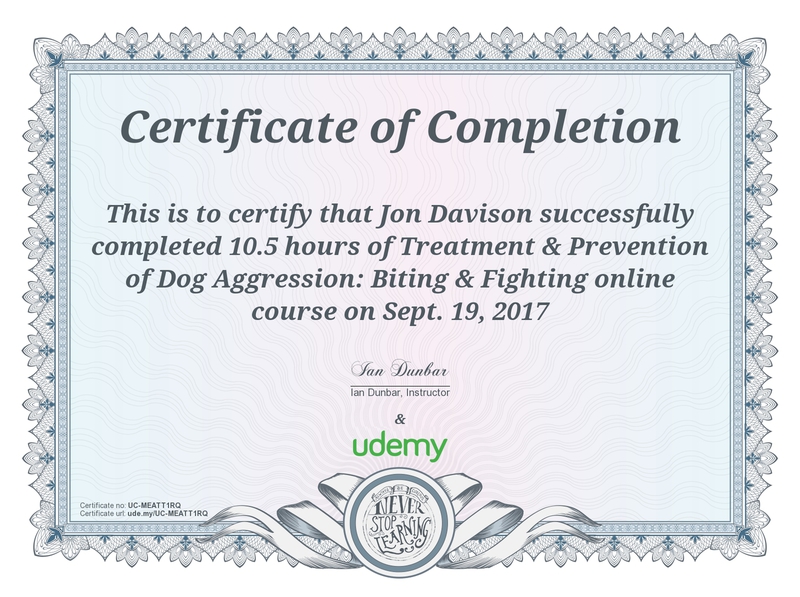 CPD (Continuing Professional Development) is massively important in the Dog Training World as we are learning new things through science every day -- it is vital to keep up to date -- Below is my evidence to you that I maintain this each and every year!!