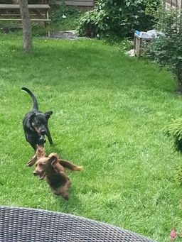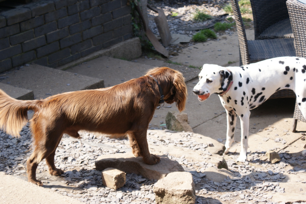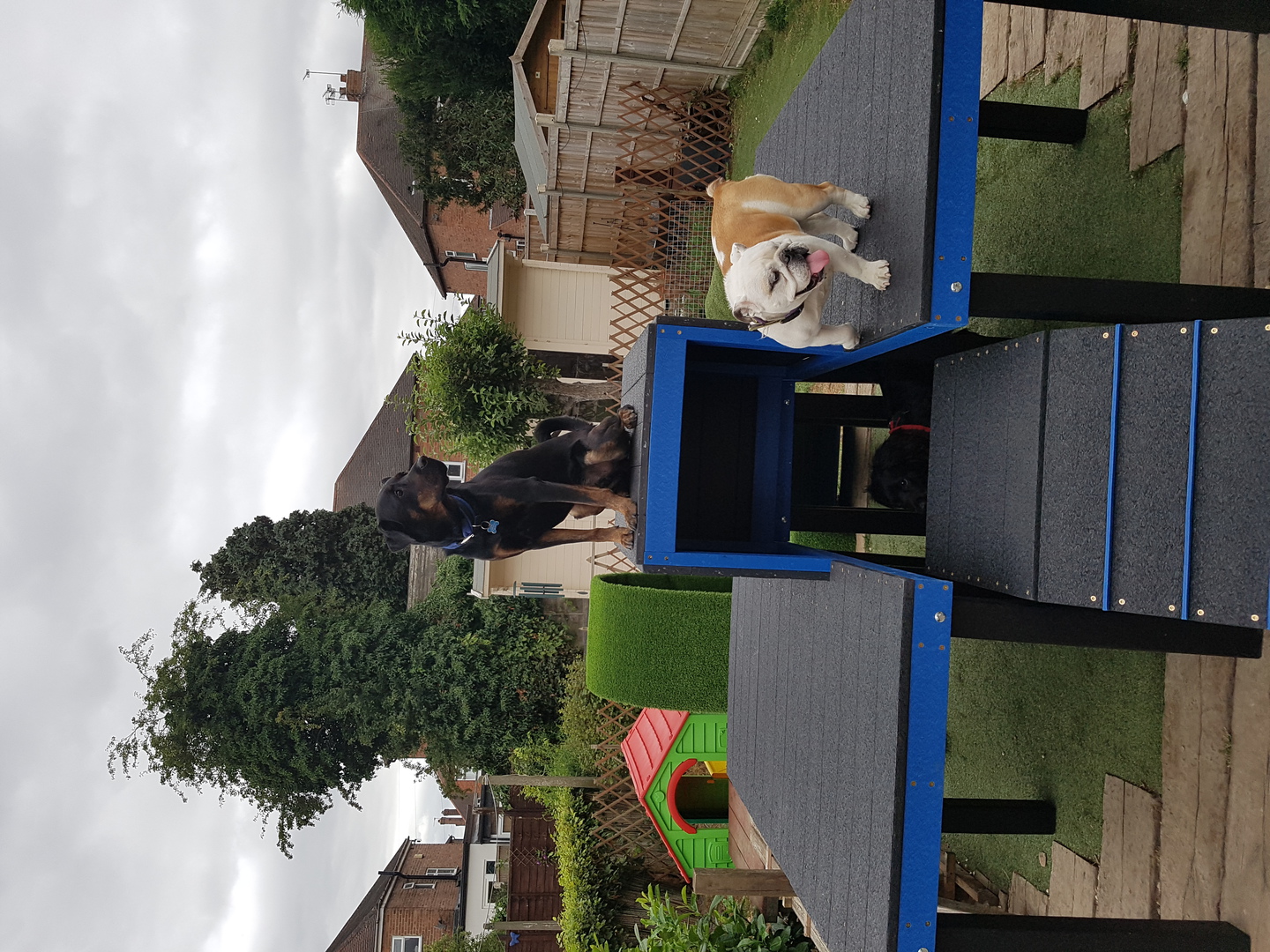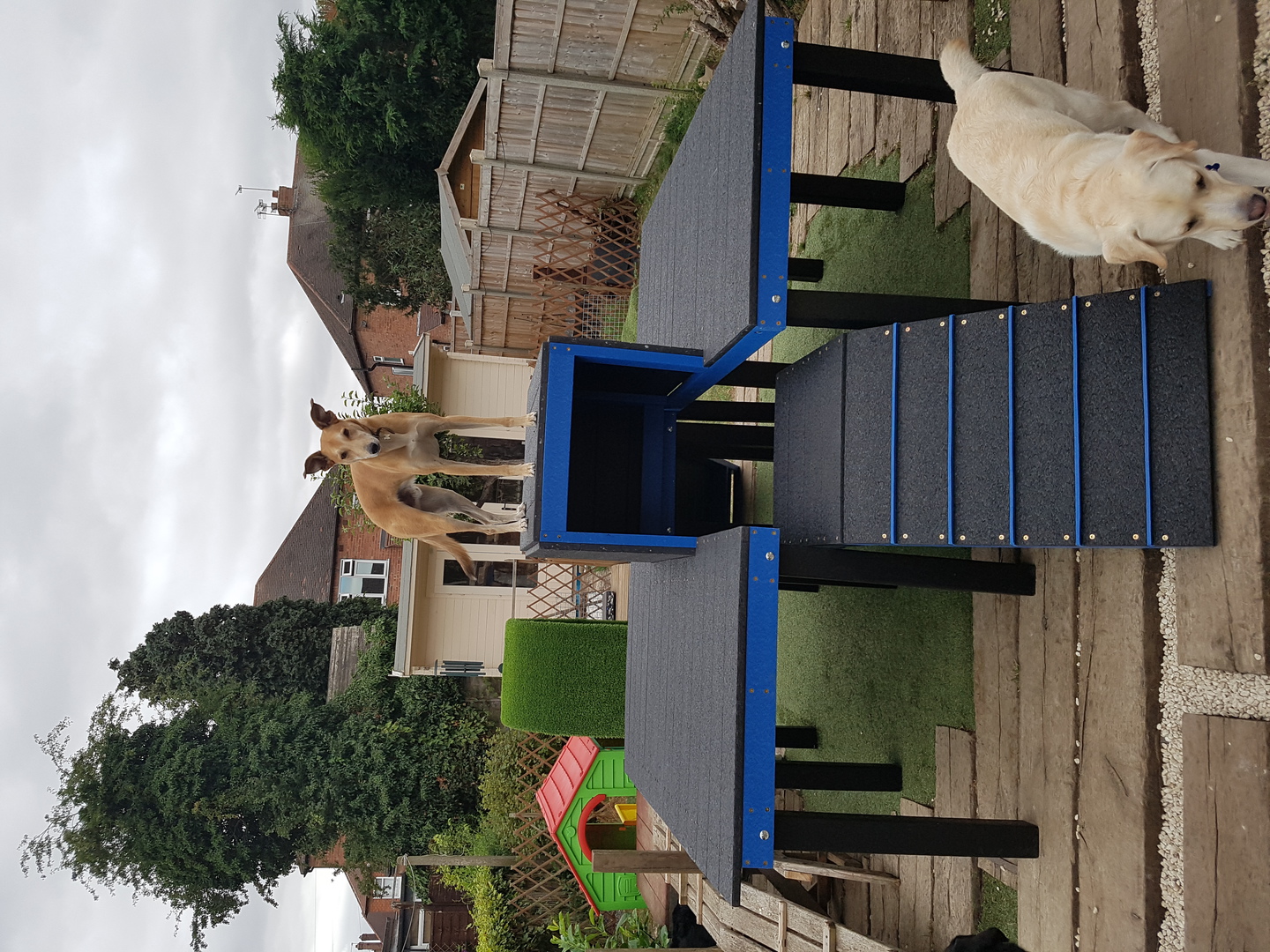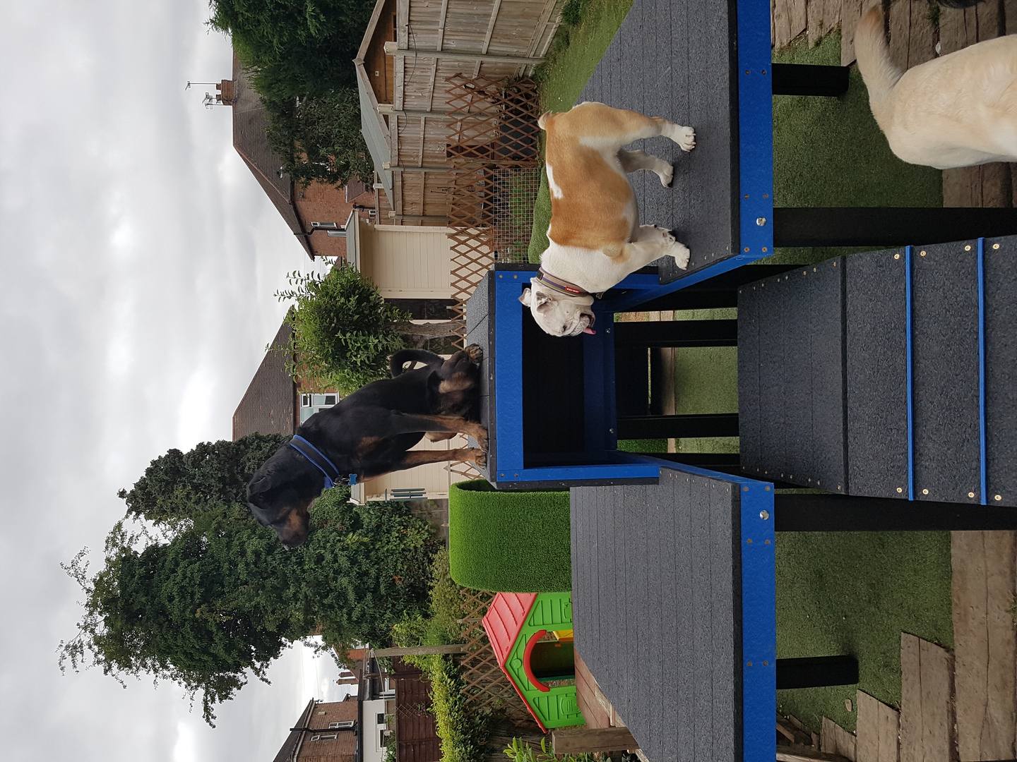 We have a large garden with a tyre tunnel, dog pool (summer), exploration areas's, Pause Table & Raised Rest Area.
